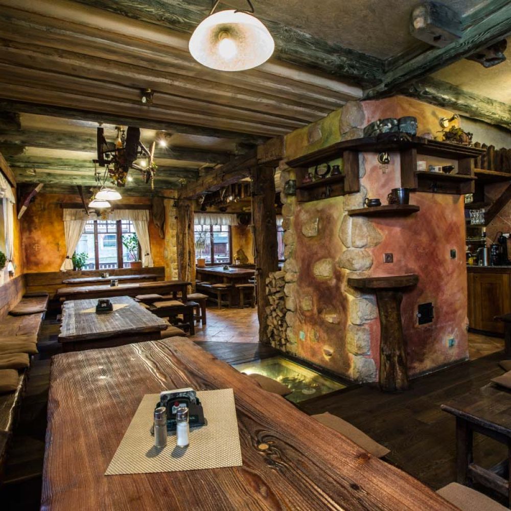 V jedinečném prostředí keltské restaurace si můžete pochutnat na krkonošské i mezinárodní kuchyni, vynikajících salátech, na pizze naší vlastní výroby a na výborné točené Plzničce či archivních vínech z Moravy.